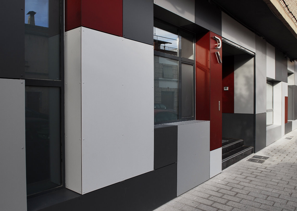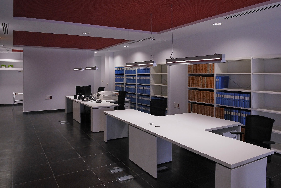 Entire refurbishment of an apartment to accommodate the offices for the new property registry office. The use of corporate colors in the façade, ceilings and furniture; together with maximizing the natural light inside the offices were the main premises in this work. The solution of a pixelated façade permits the use of color, enlarging windows and making new ones where needed.